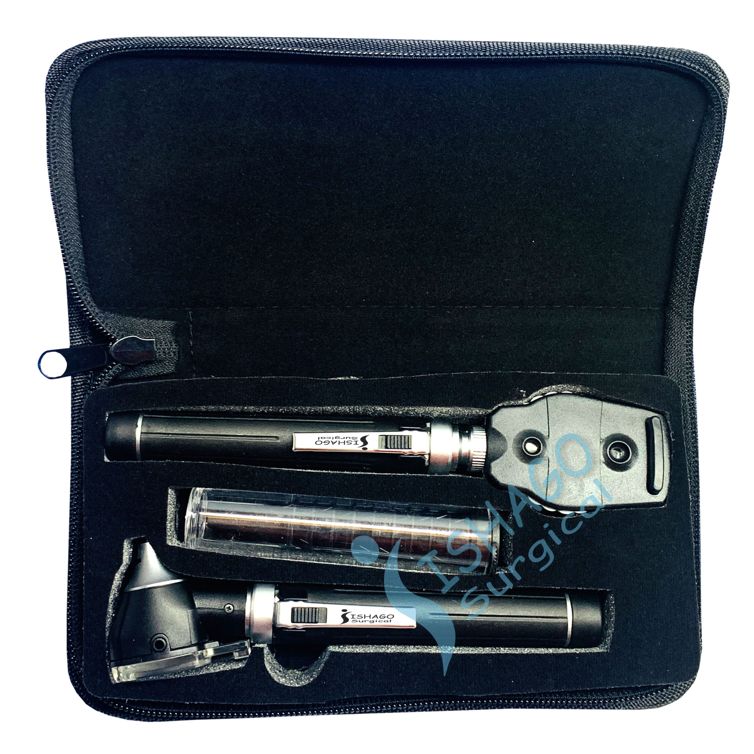 The Fiber Otoscope and Ophthalmoscope Set is used by professionals to clearly examine ears.